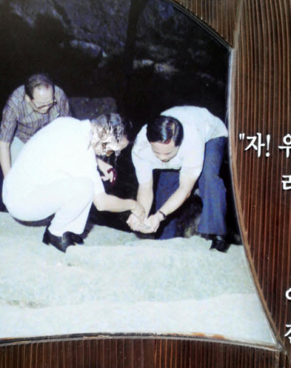 | ↑↑ 금오산 대혜폭포에서 청소를 하는 박정희 전 대통령/ 사진 = 구미시 제공 |