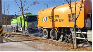 지역 도로 청소 차량은 진공 노면 청소차 46대, 분진 흡입차 1대, 고압 살수차 6대 등 총 53대로 기온이 5℃ 이상인 경우에는 진공청소(분진흡입 등)와 물청소를 병행하고 5℃ 미만이면 물청소는 하지 않는다.
