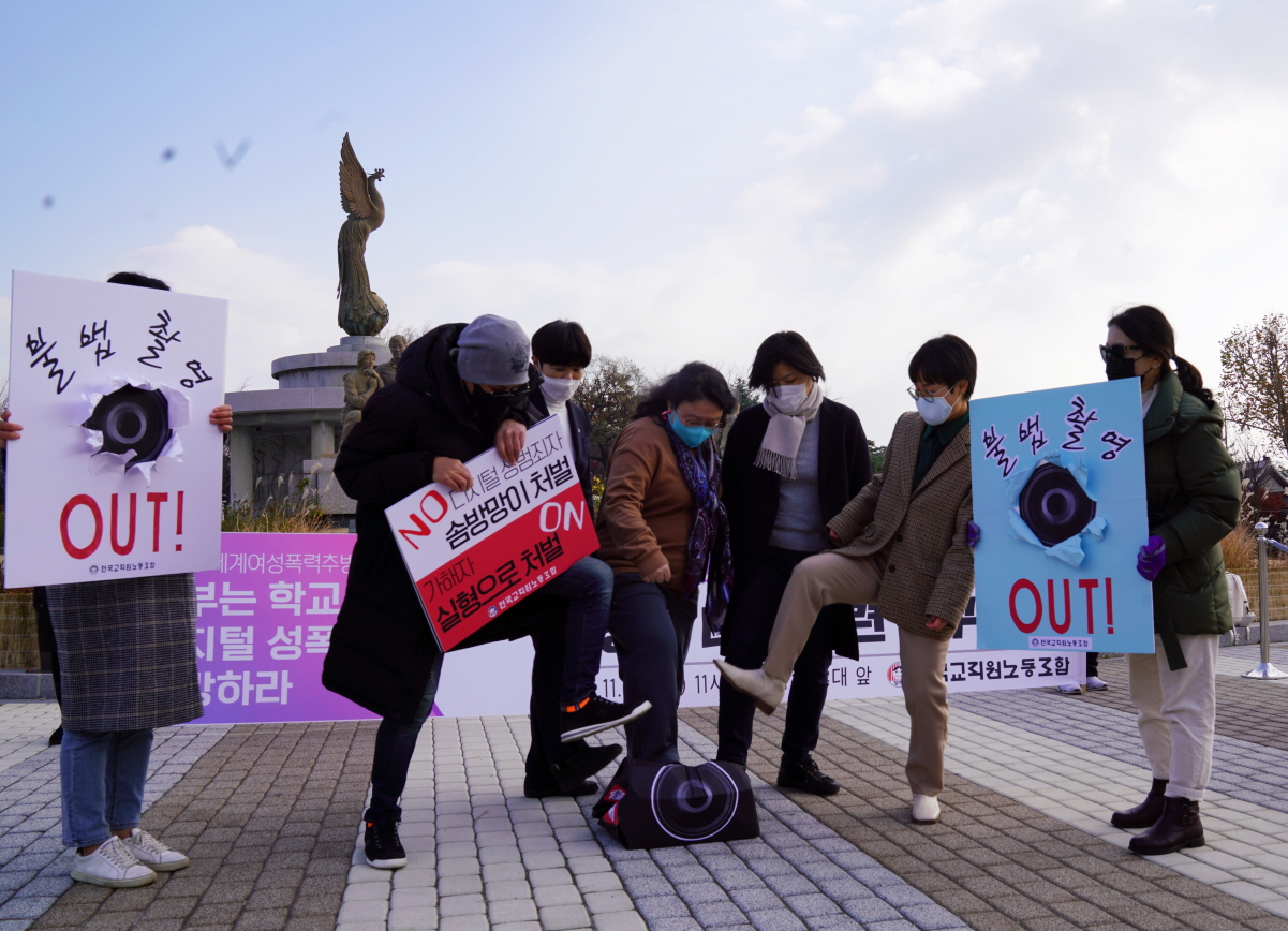 | ↑↑ 지난해 11월 25일 전교조가 학교 내 불법촬영과 디지털 성폭력 근절을 위한 범정부 대책마련 촉구 선언 기자회견을 가졌다./ 사진= 전교조 제공 |