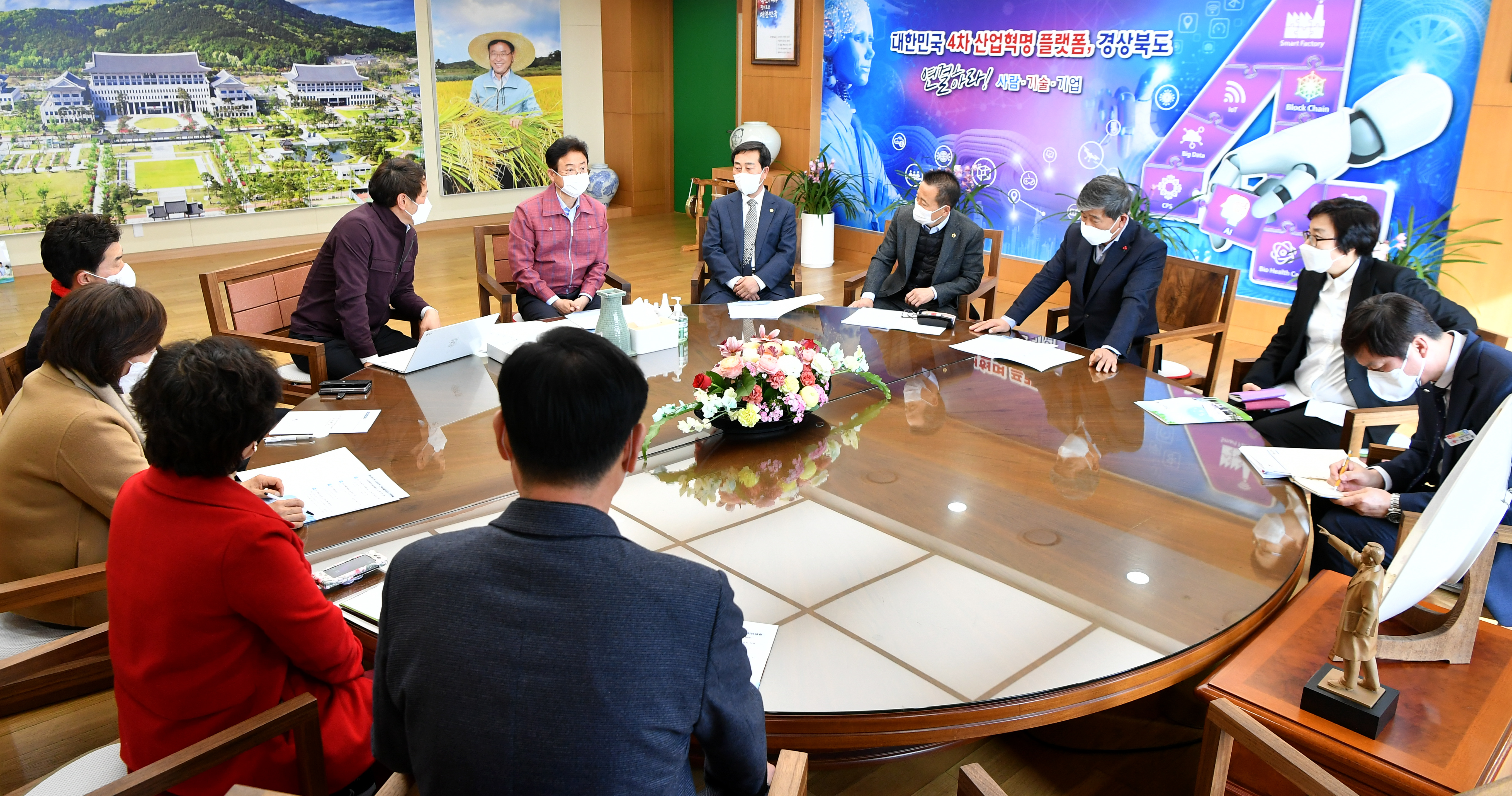 | ↑↑ 지난 14일 구미시의회 반특위 위원들은 경북도청에서 이철우 지사와 만나 낙동강 취수원 다변화의 취지, 반대 사유, 환경부가 실시한 낙동강 유역 통합 물관리 방안 마련 용역에 대한 구미시와 구미시의 재검증 용역 결과를 설명했다./ 사진= 경북도 제공 |