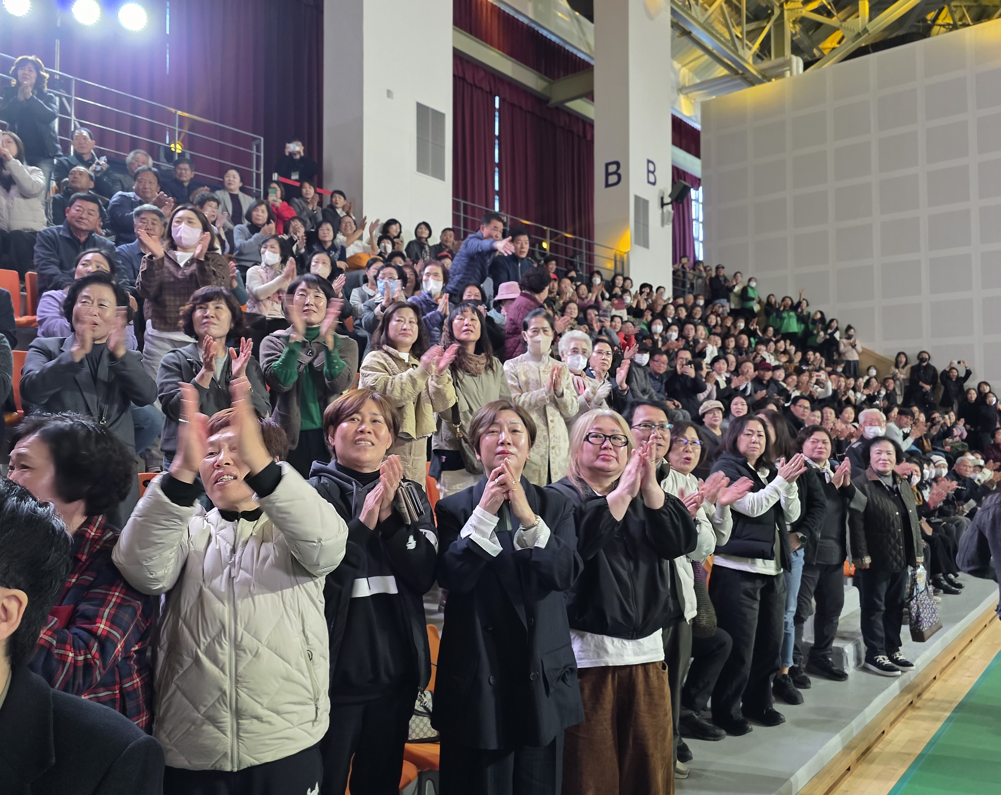 ↑↑ 지난 14일 경북 구미시 복합스포츠센터에서 열린 박정희 대통령 탄신 108돌 문화행사에 참석한 도민들이 박근혜 전 대통령이 입장하자 환호하고 있다. [사진 K문화타임즈. 재판매 및 DB 금지. 2025.11.14] |