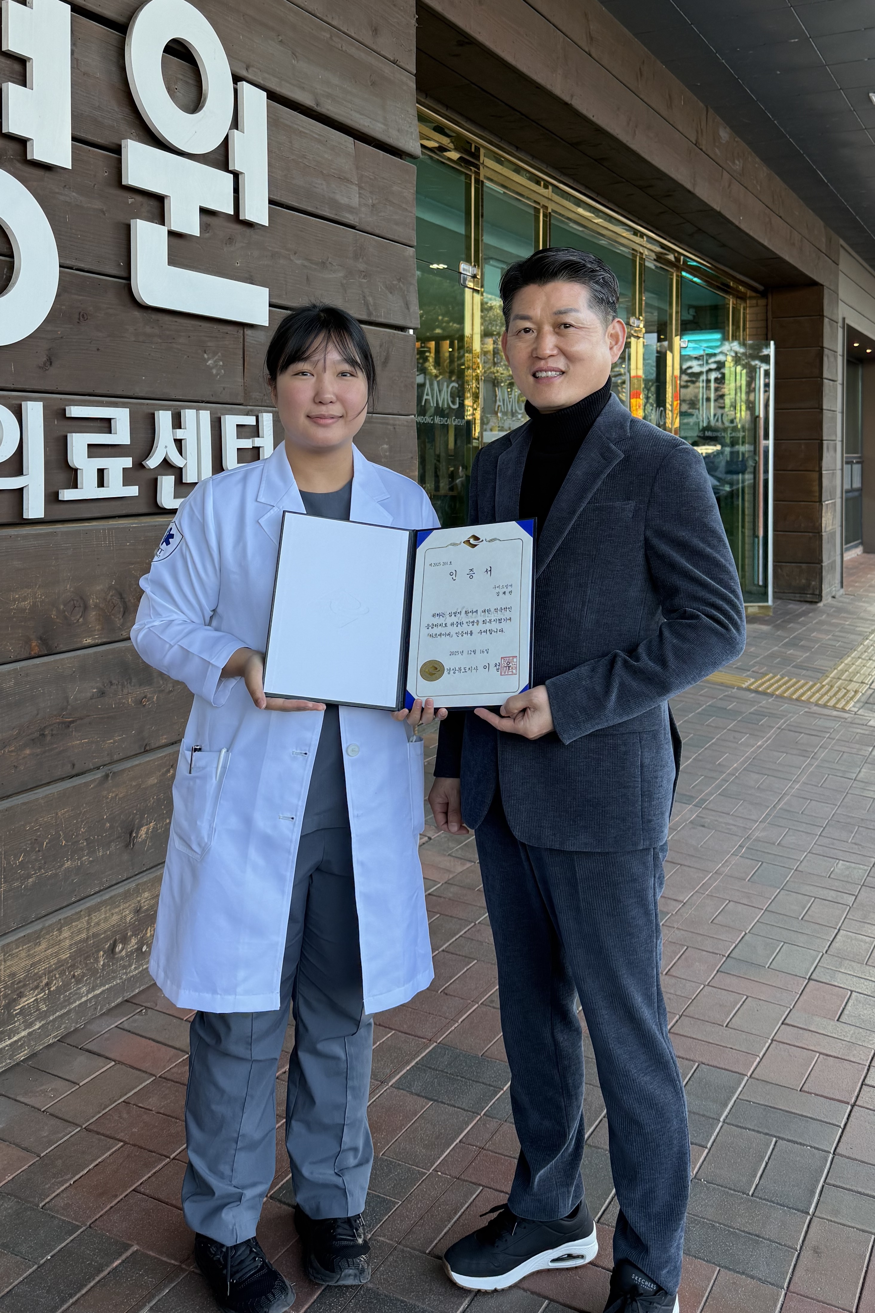 7일 소중한 생명을 살리는 데 기여한 역할을 인정받아 경상북도 도지사로부터 하트세이버 인증서와 하트세이버 배지(badge)를 받은 김양은 “이번 경험을 통해 구미대 응급구조학과의 현장실무 맞춤형 교육에 대한 자부심을 느끼게 됐다"며 "1급 응급구조사 국가고시에 합격해 국민과 국군장병의 생명과 안전을 위해 최선을 다하겠다"고 밝혔다.