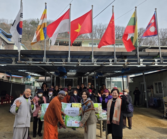 ↑↑ 꿈을이르는사람들을 방문한 김형미 회장이 진오스님, 강현자 마하붓다사 신도회장 등과 함께 기념촬영을 했다. [사진 =K문화타임즈. 재판매 및 DB 금지. 2026.2.4] |