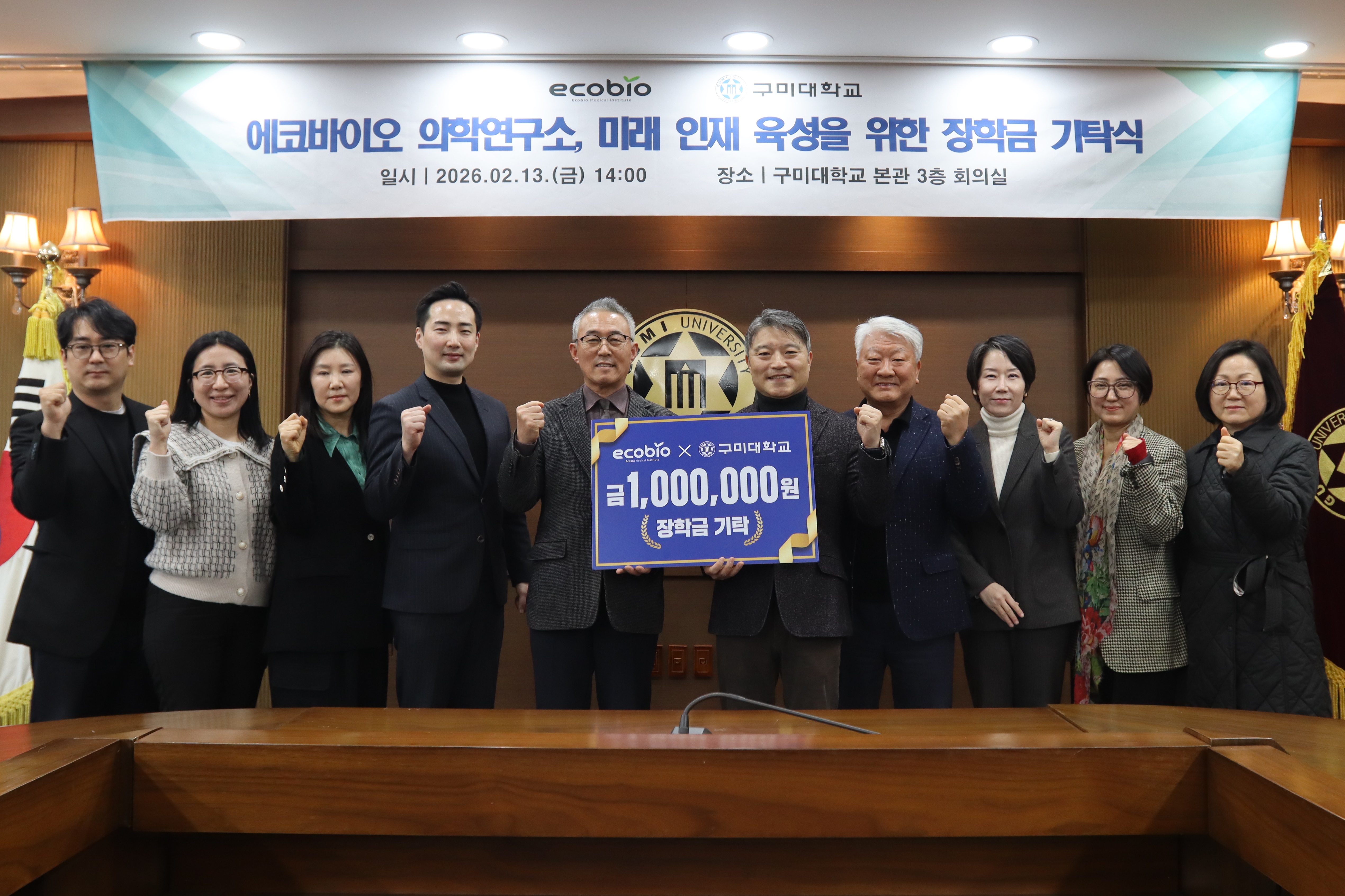 이승환 총장은 “에코바이오 의학연구소가 미래 인재를 양성하는 교육의 가치를 인정한 발전기금 기탁에 감사드린다”며 “학생들이 지역과 산업의 미래라는 책임감을 갖고, 실무 능력과 인성을 함께 갖춘 전문 인재를 길러내는데 더욱 힘쓰겠다”고 밝혔다.