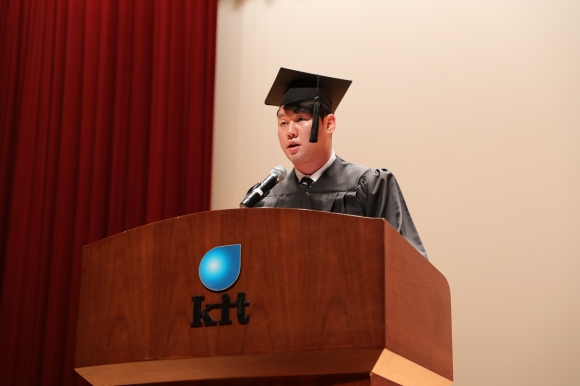 ↑↑ 졸업생을 대표해 인사말을 하는 이재영 학생. [사진 =금오공대] |