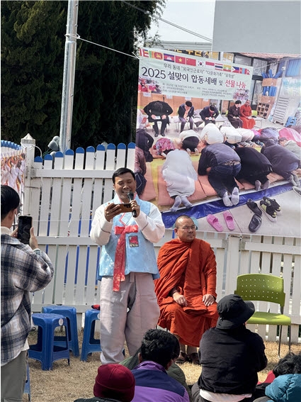 또한 이날 행사에서는 흥겨운 공연도 이어졌다. 특히 지난해 합동결혼식에서 축가를 불렀던 캄보디아 신랑 싱소팩이 무대에 올라 축가를 다시 불러 분위기를 돋운 행사에서 참석자들은 이어진 합동 세배와 덕담 나누기 시간을 통해 서로의 건강과 행복을 기원했다.