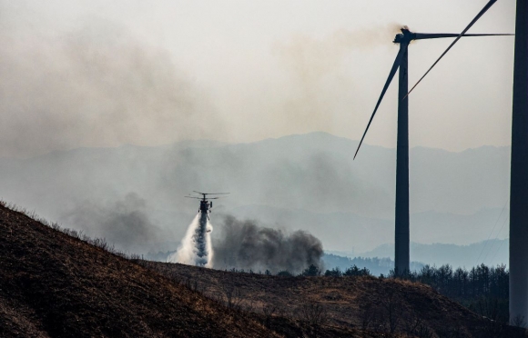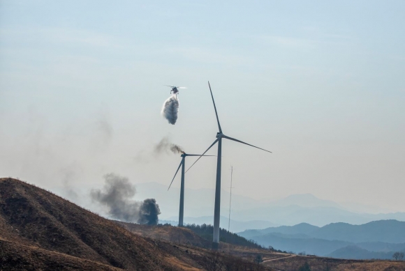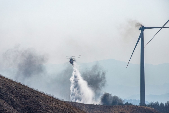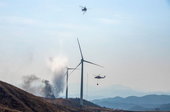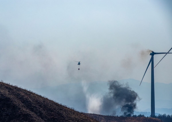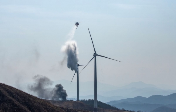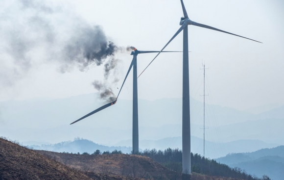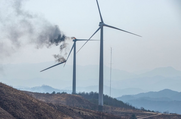 | ↑↑ 경북 영덕 풍력발전기 화재 현장 [사진= 작가 조경래, 재판매 및 DB 금지. 2026.3.25.=K문화타임즈] |