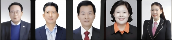 ↑↑ 왼쪽부터 민주당 김철호, 국민의힘 김장호·임명배, 개혁신당 조순자, 무소속 정수미 예비후보