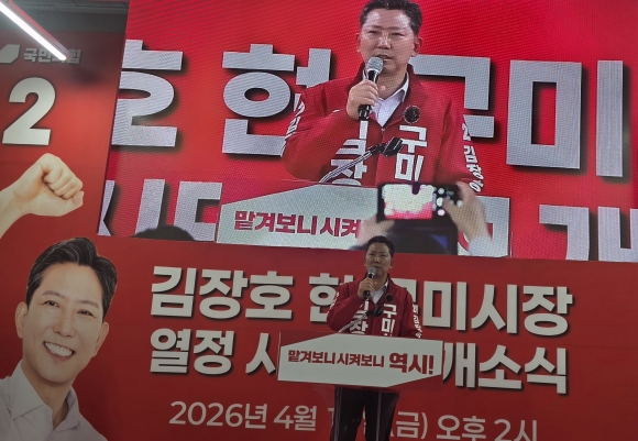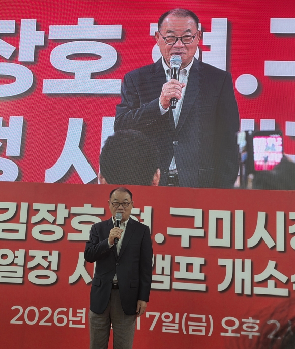 ↑↑ 인사말하는 김장호 구미시장 예비후보 [사진 =K문화타임즈] |