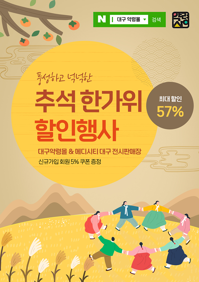 [k문화타임즈= 김미자 기자] 대구약령시 한방제품 특화몰인 ‘동대구역 메디시티대구 명품브랜드 판매장’(이하 메디시티대구 판매장) 및 ‘대구 약령몰’(이하 약령몰)에서 추석을 맞아 9월 26일까지 ‘추석맞이 특별할인전’을 진행 중이다.