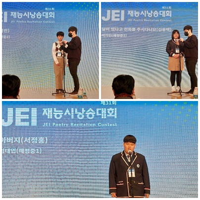 [K,문화타임즈= 김미자 기자] 구미 해평중학교(교장 이옥이)가 지난 20일 재능문화와 한국시인협회가 주최하고 문화체육관광부, 교육부 등이 후원한 제31회 재능 시 낭송 대회 본선대회에 학생 3명이 참가해 자웅을 겨뤘다.